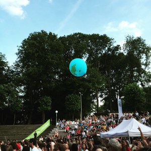 Diesen Gedanken scheint auch einer der Sänger gehabt zu haben, denn dieser nimmt einen riesengroßen Luftballon in Form eines Globus und fragt eine Dame aus der ersten Reihe, wo sie denn gerade gerne hinreisen würde. Er dreht den Ballon und sie tippt auf Südamerika und während seine Bandkollegen sich bereit machen, um das nächste Lied im lateinamerikanischen Stil anzustimmen, versäumt er es nicht, sinngemäß zu sagen “Urlaub ist da, wo wir gerade sind”. Dann spielt er den federleichten Globus in die Menge und die Weltkugel wandert durch die tanzende Menschenmenge.